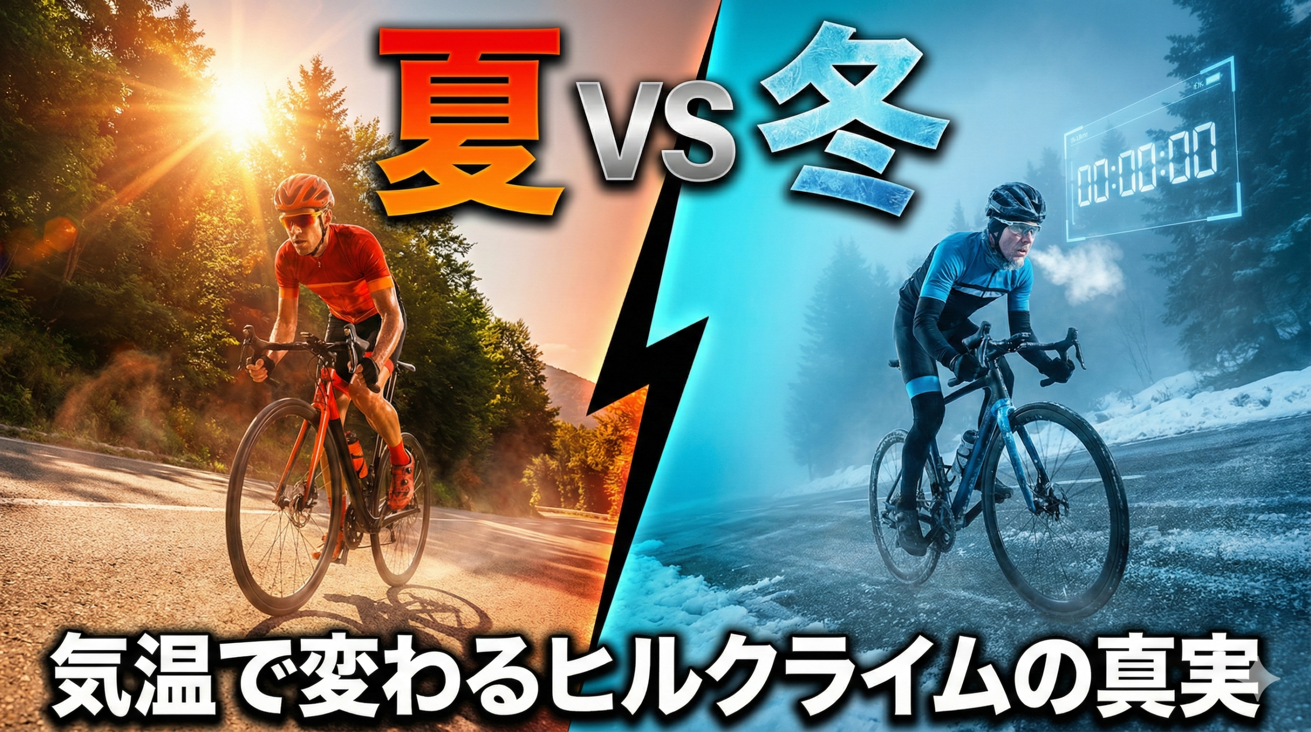 「冬は同じコースなのにタイムが落ちる」「夏はバテてパワーが出ない」という悩みを抱えるサイクリストは非常に多いのではないでしょうか。気温という一見コントロールできない要因がヒルクライムのパフォーマンスにどれほど影響するのかを正しく理解すれば、季節ごとに適切な対策を講じることができます。この記事では、ロードバイクのヒルクライムにおける夏と冬のタイム差の原因を多角的に解説し、季節に合わせたタイム向上の方法をお伝えします。