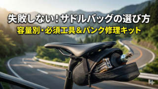 装備 ロードバイクのサドルバッグ容量別の選び方とパンク修理工具ガイド ロードバイクのサドルバッグは、容量0.5L以下から7L以上まで5段階に分かれ、ライドスタイルに合わせた選び方が重要です。パンク修理に必要な工具は替えチューブ・タイヤレバー・空気入れの3点が基本セット。本記事では容量別の特徴、取り付け方法、人気ブランド、パンク修理手順まで総合的に解説します。 2026.03.10 装備